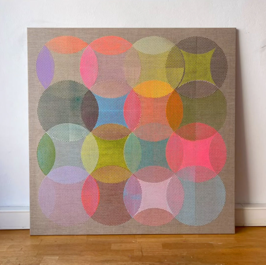 Die geometrischen und abstrakten Werke des deutschen Malers Jürgen Katzenberger sind von seinem Hintergrund in Mode und Grafikdesign beeinflusst. Mithilfe der Technik des Pointillismus schafft Jürgen fein detaillierte, helle und raffinierte minimalistische Werke. Lesen Sie weiter, um mehr über Jürgens künstlerische Praxis und Einflüsse zu erfahren.